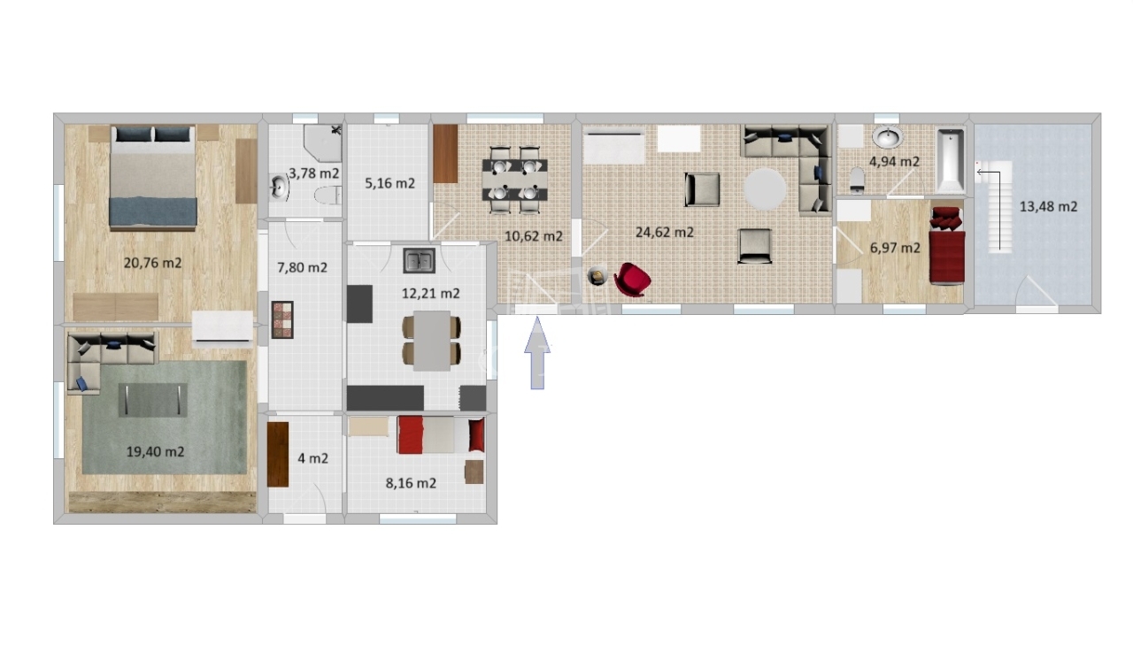 128 m2面积 4 + 1 房间