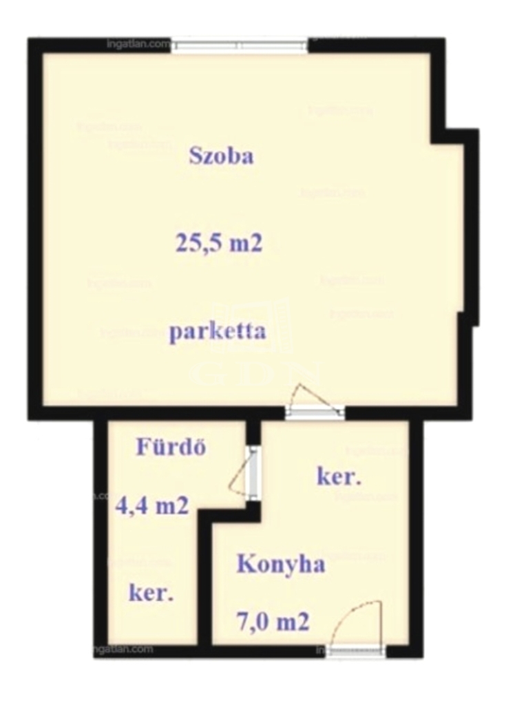 36 m² • 1 szoba • földszint • házközponti fűtés • utcára néző