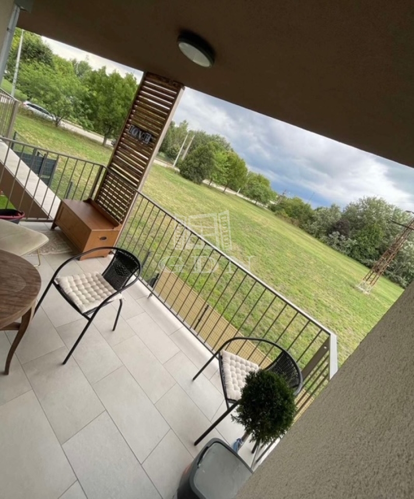 A lakáshoz tartozik egy 7 négyzetméteres terasz is, ahol a reggeli kávéját élvezheti a friss levegőn.