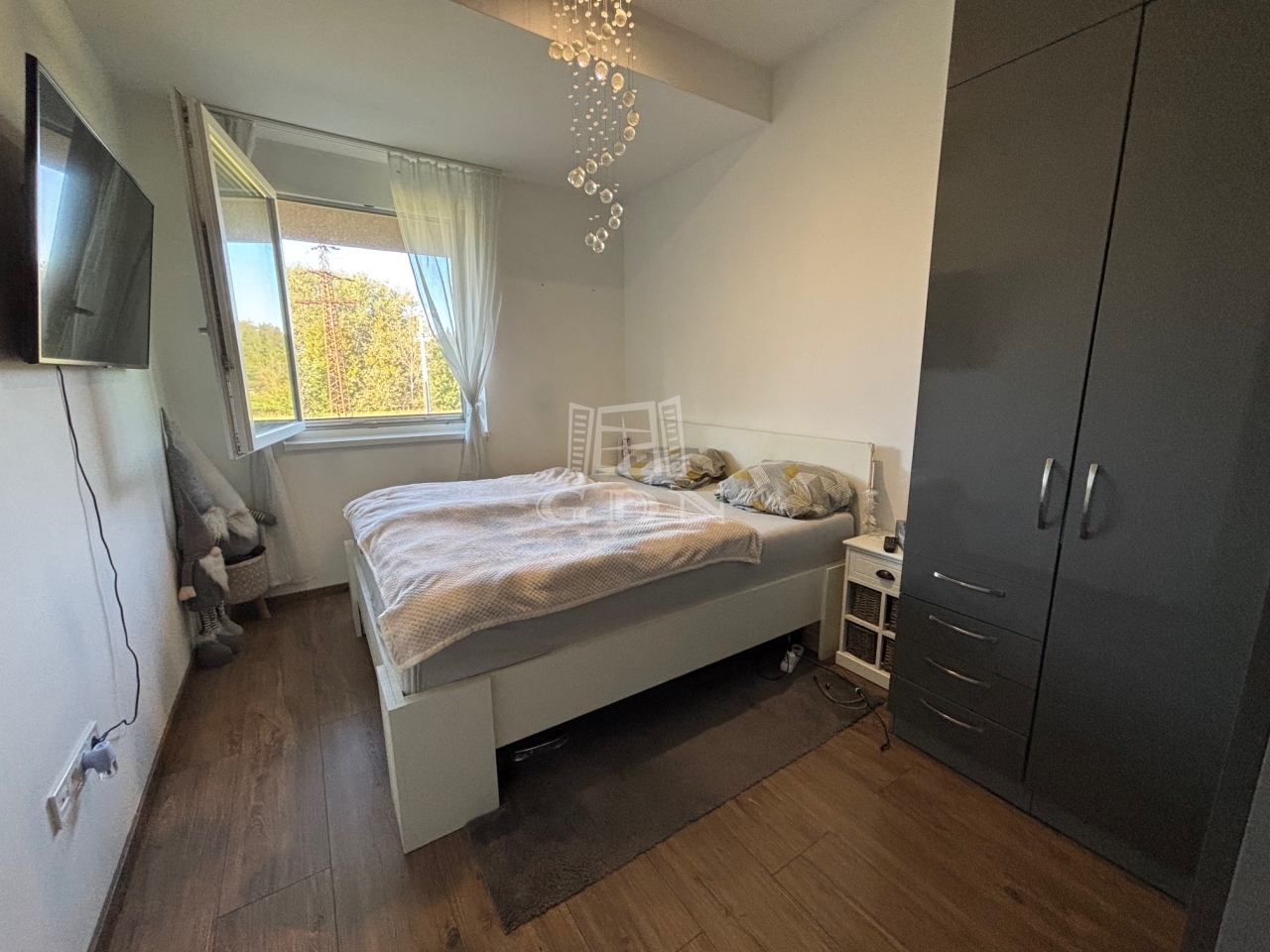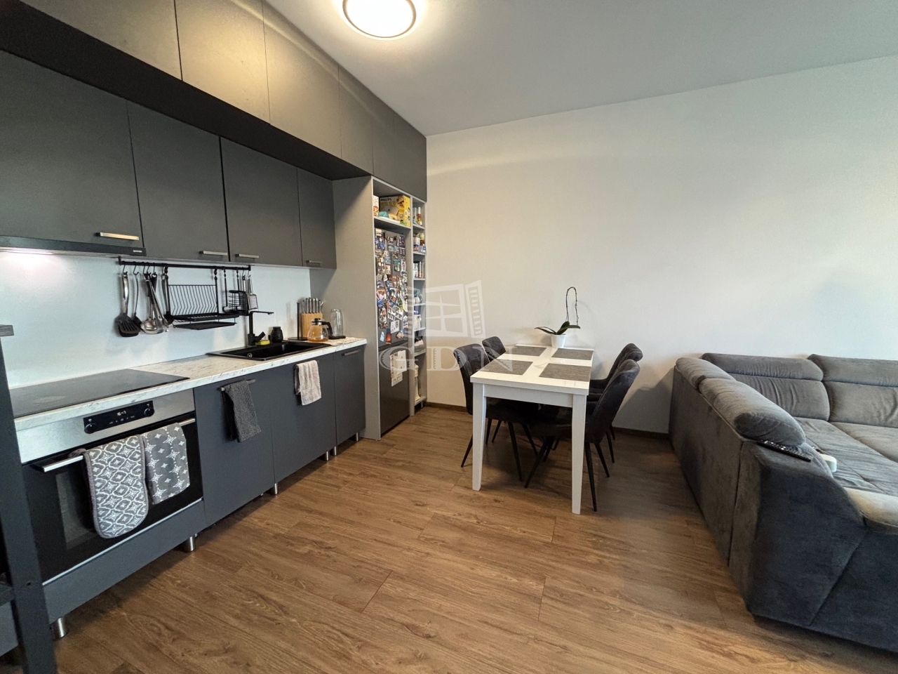 Az 1. emeleti, 60 négyzetméteres ingatlan amerikai konyhás nappalival és 2 szobával rendelkezik, ideális választás lehet családok vagy befektetők számára.