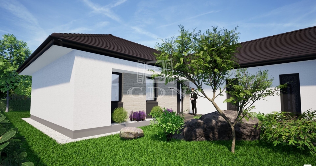 A Wienerberger Porotherm téglából épülő házak magas műszaki tartalommal épülnek. Tetőszerkezete C22 I. osztályú , rovar, gomba és lángmentesítővel kezelt faanyaggal kerül kivitelezésre. Fedése Terran vagy Bramac cseréppel történik, az összes rendszer tartozékkal, előírások szerint helyenként hófogóval. Bádogos szerkezetek, a külső vízelvezetések ereszcsatornái, a lefolyócsövei és az egyéb bádogos szerkezetek 0.6 mm vastag antracit acéllemezből készülnek. Homlokzati falfelületek 15 cm vastag EPS hőszigetelő rendszert, a lábazatok 10 cm vastag XPS lábazati hőszigetelő rendszert kapnak. A padozatokba 10 cm vastag teherbíró EPS hab hőszigetelés kerül. A födém hőszigetelése 30 cm vastag ásványgyapot szigetelőanyaggal történik. Külső nyílászárói műanyag, három rétegű üvegezéssel szerelt, fokozottan hang-és hőszigeteltek. Fűtése, a háztartási helyiségben elhelyezett 10Kw teljesítményű Gree Versati 3 hőszivattyúval történik, padlófűtéses hőleadással szabályozható termosztáttal. A hőszivattyú biztosítja a melegvizet is, egy 200 literes hőtárolós víztartállyal. Az ingatlanban riasztó, kaputelefon, klíma előkészítés történik. Beltéri ajtók, hideg-meleg burkolatok, szaniterek, csaptelepek választhatók. Garázs 19.5 m2, 7 239 000 Ft. Ha bővebb tájékoztatást szeretne, kérem keressen. Vegye igénybe irodánk szolgáltatásait. Hitelügyintézésben is segítünk.