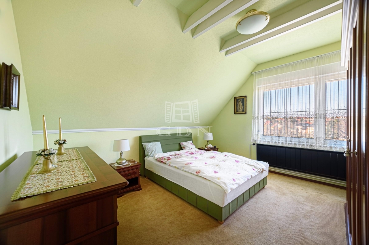 előszoba (4,2 m2), WC (1,1 m2), kamra (0,9 m2), nappali (34,5 m2), konyha (8,16 m2), gardrób (4,5 m2), fürdő (3,30 m2), kettő szoba (8,7 m2, 8,06 m2). Ezen a szinten gyönyörködhetünk, a 40 m2-es teraszon a város látképébe.