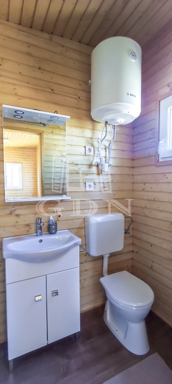 A berendezés tartalmazza a hálózati víz-, csatorna és áram kiállásokat. A fürdőszoba zuhanykabinnal, WC-vel és mosdóval felszerelt. Az ár a konyhabútort nem tartalmazza.