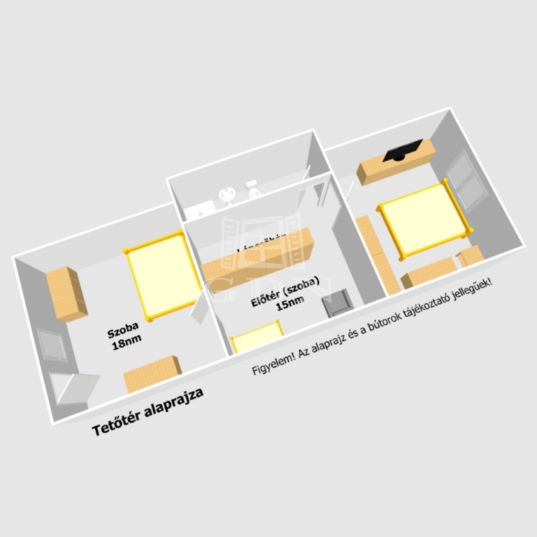 - 3 szoba (2 az emeleten),