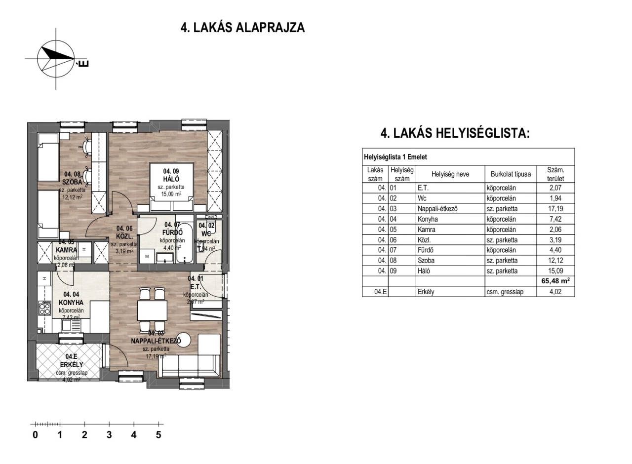 Az ingatlan felépítése alagsorból – ahol tárolók, kazánház és három gépkocsi befogadására alkalmas teremgarázs lesz kialakítva – földszintből és egy emeletből áll. Szintenként két-két lakás kap helyet, valamint a tetőtérben egy nagyobb alapterületű lakás helyezkedik majd el, terasszal. Ez a lakás privát adottságai miatt különösen vonzó lehet.
