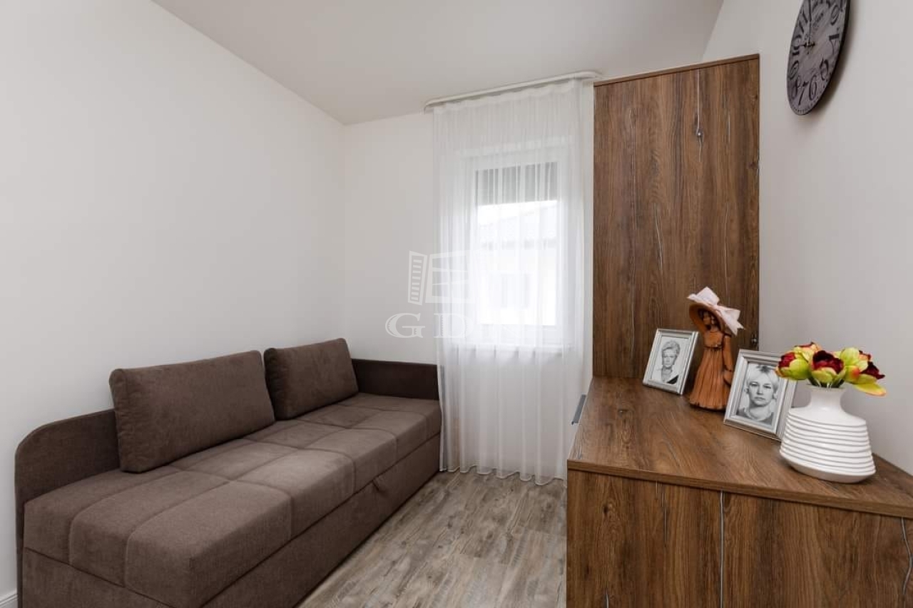 Szombathely dinamikusan fejlődő városrészén, az oladi dombon új építésű 86 m2-es ikerház eladó. A panorámás, csendes nyugodt környezetben, a jó elrendezésű ikerházak közös találkozási pontja csupán a garázsok fala. Magas műszaki tartalommal épült az ingatlan . Az épület teherhordó és válaszfalai Leier téglával kerültek kivitelezésre. Homlokzata 15 cm vastag EPS hőszigetelő rendszert kapott, a födémre 30 cm vastag szigetelés került. A tetőt Bramac cserép borítja. Műanyag nyílászárói fokozottan hang-és hőszigeteltek, alumínium redőnyökkel, szúnyoghálókkal felszereltek. Elektromos kialakítás: 1x32 Amper elektromos kapacitással + 1X32 Amper H tarifával. Fűtés és meleg vízellátás, a fűtést biztosító háztartási helyiségben elhelyezett 10 Kw Gree Versati 3 hőszivattyúval, padlófűtéses rendszerrel készült, szabályozható termosztáttal. A Gree Versati hőszivattyú biztosítja a meleg vizet is egy 200 literes hőtárolós víztartállyal. Nappalijában hűtő-fűtő klímát szereltek. A ház nagy részében neves belsőépítészeti stúdió által tervezett és kivitelezett bútorokat építettek be. Konyhája rendkívül praktikus, minőségi háztartási gépekkel felszerelt. A berendezés a vételár részét képezi. Ha jó hangulatú, szépen bebútorozott, átgondolt ingatlanra vágyik, megtalálta. További információért, megtekintés céljából keresse irodánkat. Vegye igénybe szolgáltatásainkat ! Ha hitelre, állami támogatásra van szüksége, abban is segítünk.