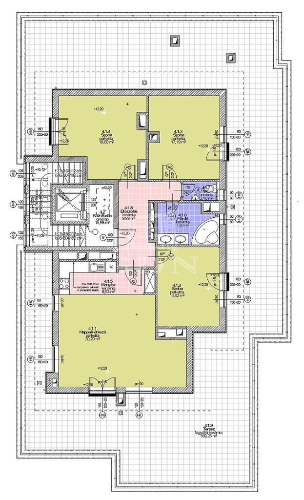 170 m² körbefutó, napfényes tetőterasz