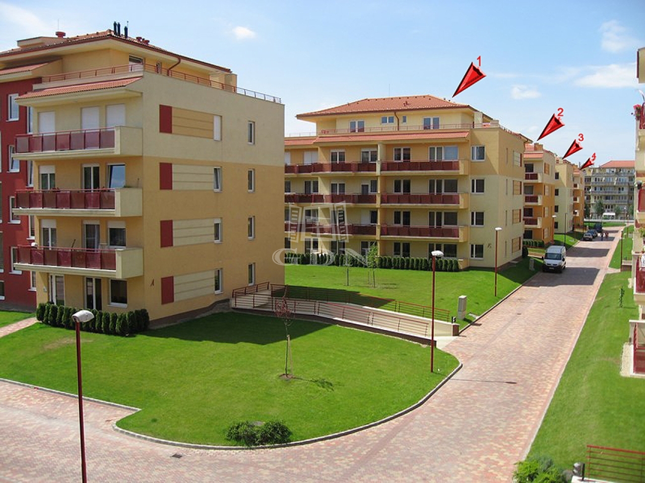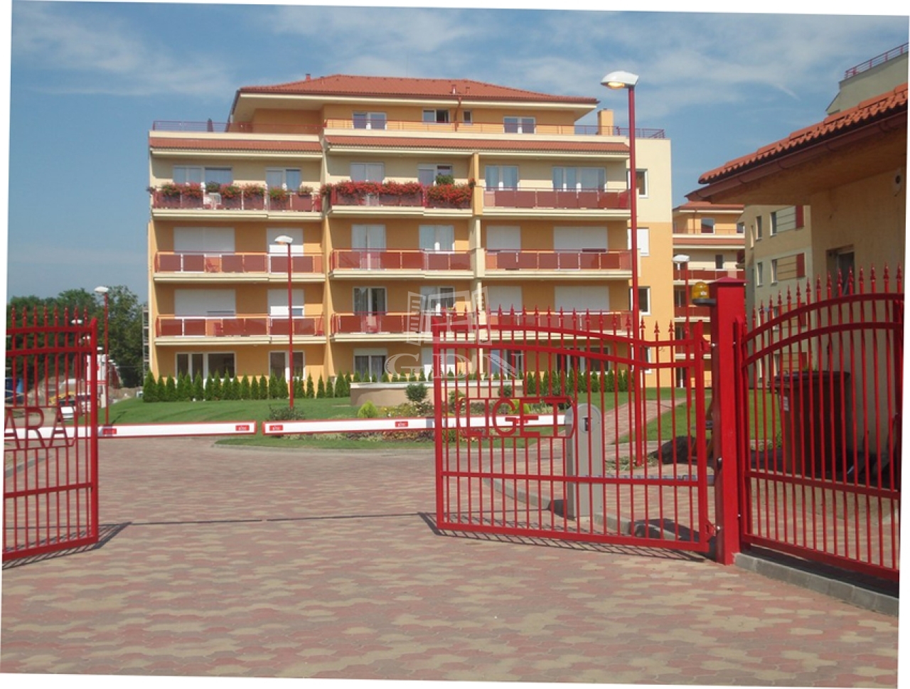 A lakópark zárt, parkosított, igényesen kialakított környezet, szökőkutakkal és pihenőzónákkal.