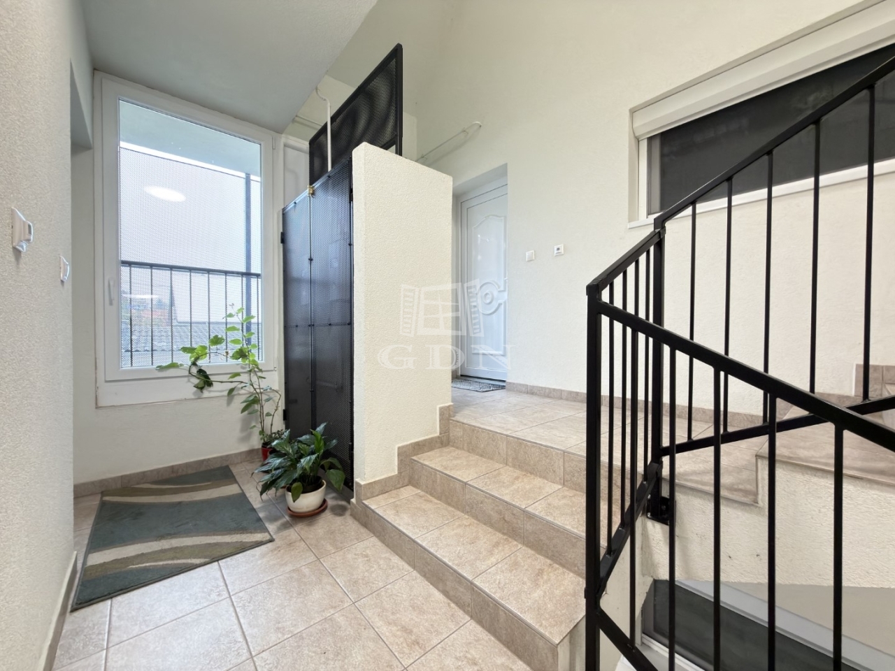Az eladási ár része egy 16 m²-es fedett gépkocsibeálló, valamint az ahhoz tartozó 4,38 m²-es saját tároló. A társasház térkövezett belső kocsibehajtóval rendelkezik, továbbá a hátsó, zárt udvarban egy további autó számára is biztosított a parkolás.