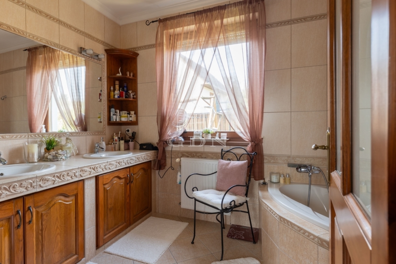 A hőszigetelt, 3 rétegű üvegezésű nyílászárók, a magas minőségű hideg- és melegburkolatok, a dizájnos falpanelek, valamint a tetőtéri tölgy lazúros lambériaburkolat a természetes eleganciát és tartósságot képviselik.