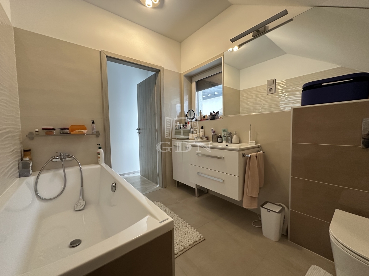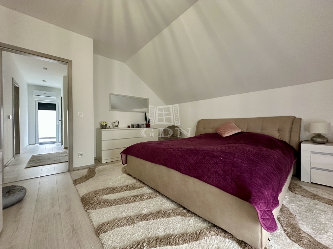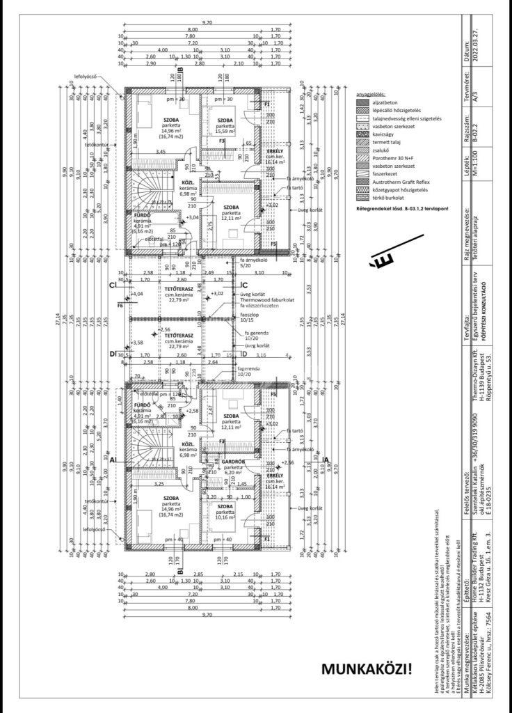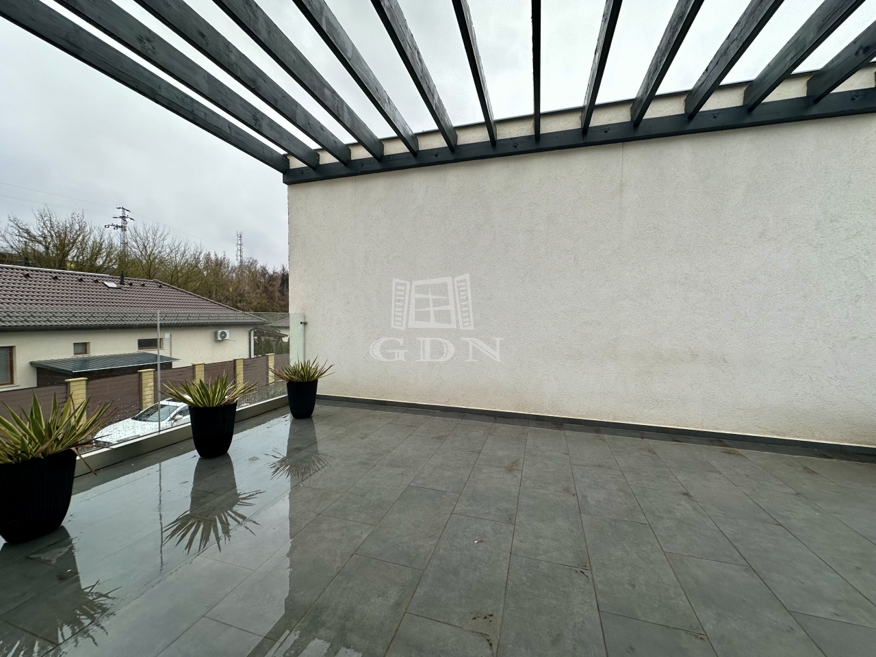 Az emeleten három különnyíló hálószoba, fürdőszoba, közlekedő, valamint egy 16 m²-es erkély és egy 22,8 m²-es tetőterasz kapott helyet, amelyek tovább növelik a komfortérzetet.