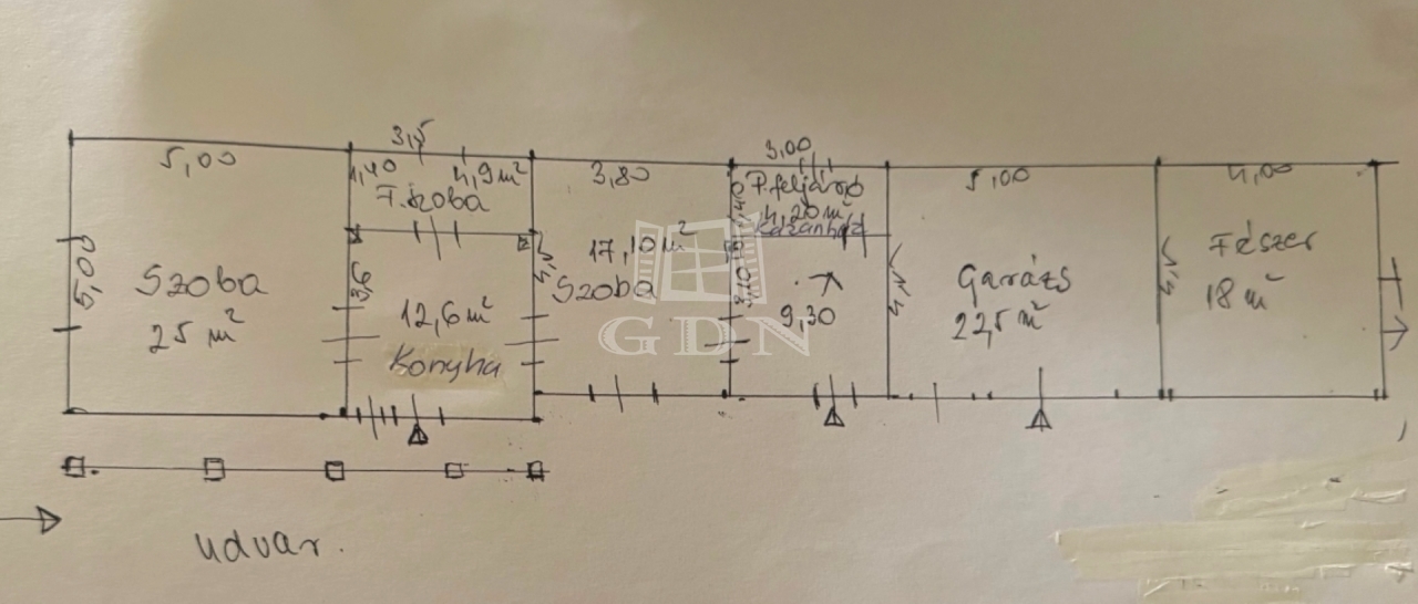 Konyha, 2 szoba, fürdőszoba WC-vel, előszoba, kazánház került kialakításra.