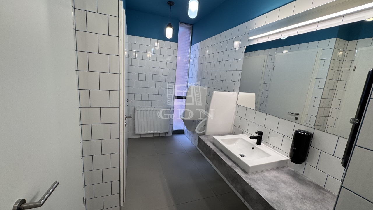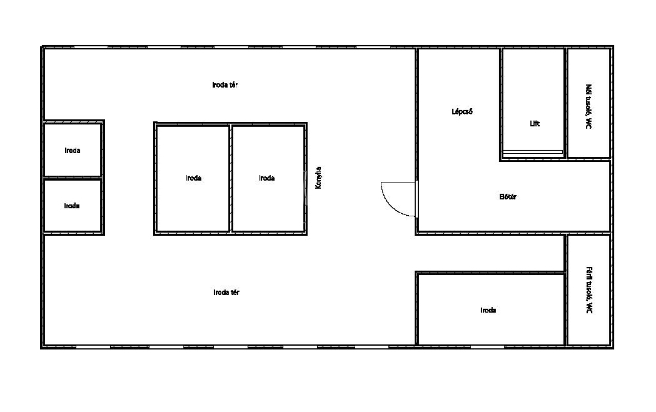 Az iroda az első emeleten helyezkedik el, az egész szint egyben bérelhető, így teljesen szeparált, önálló működést biztosít.