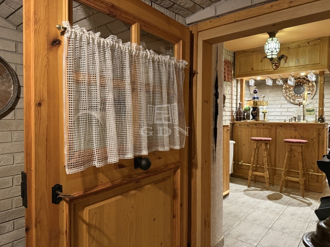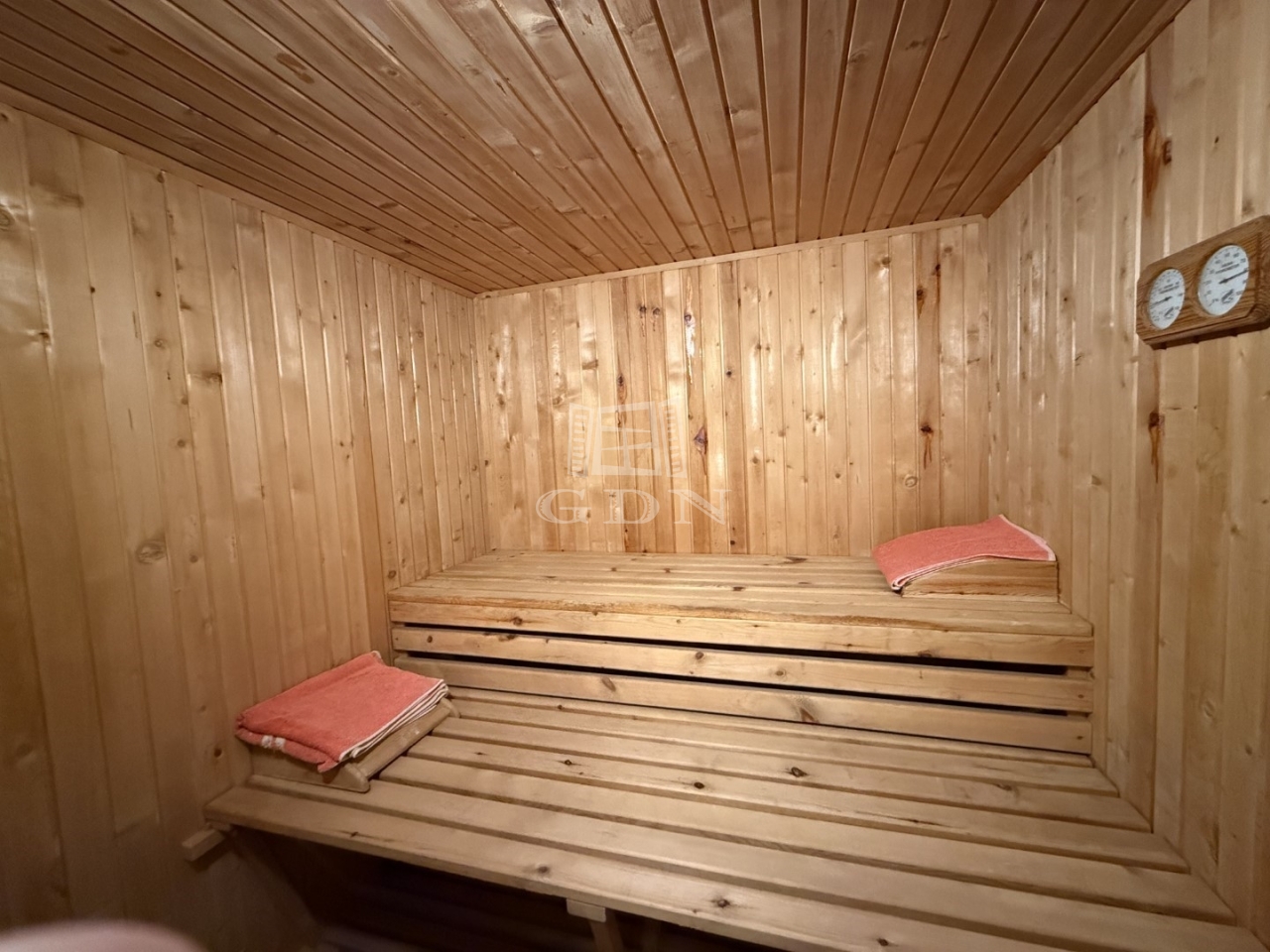 A földszinti 1 számú lakás 160m2 egy tágas, világos (45m2) nappali, étkezős konyha, 1 hálószoba, fürdőszoba, háztartási helyiség, valamint egy 36 négyzetméteres garázs található, ahonnan közvetlen bejárás nyílik a lakótérbe. A nappaliból közvetlen kijárat vezet a 16 m2-es teraszra, a szuterén részben kapott helyet egy pihenőszoba, ami jelenleg a 6 személyes szaunának ad helyet, valamint egy fürdő, wc, , pince a hozzá tartozó „ borozó”-val, valamint a garázs.
