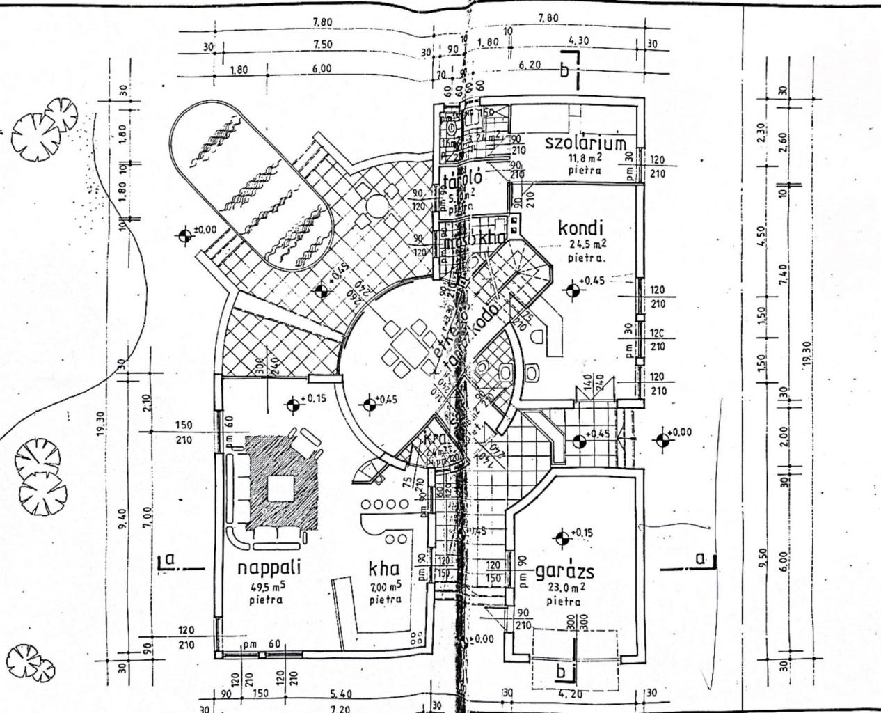 Kert felőli terasz: 55 m2