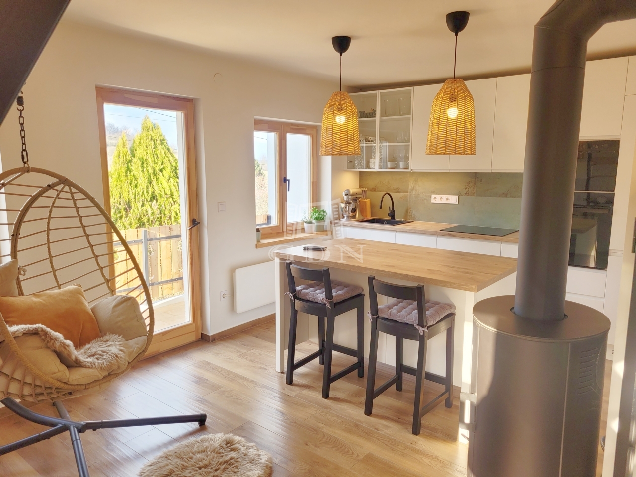 Az első szinten található a konyha és a fürdőszoba. A konyhát egyedileg tervezték és építették be. Ezen kívül egy konyhasziget és egy kis kávésarok is kialakításra került.